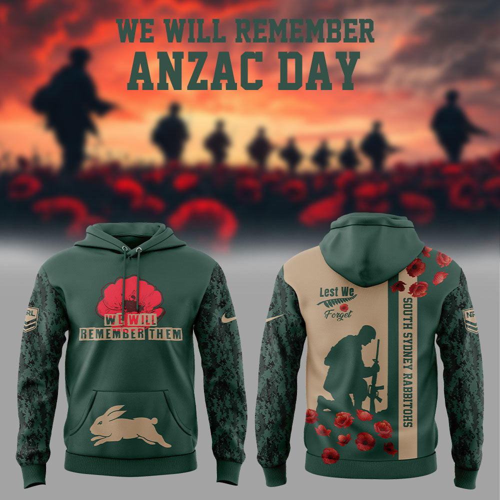 South Sydney Rabbitohs WE WILL REMEMBER, ANZAC DAY Hoodie